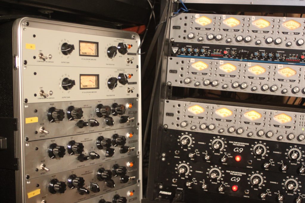 Tegeler "Crème", VTRC (x2), Klark Teknik KT-2A(x2), BSS DPR-402, dbx 160A(x2), Valley Audio Dynamite, Gyraf Audio 2-1176 LN, t.c. electronic Finaliser 96k.